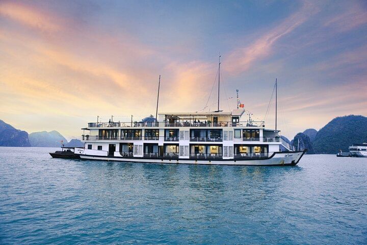 In the breathtaking scenery of Halong Bay, where peace and elegance are waiting for you. Our carefully planned luxury cruises capture the spirit of the area by fusing rustic sophistication with nostalgic Indochinese charm. As you board, you will be greeted by warm and cozy hardwood interiors that will last the duration of your journey. We pledge to take you to the most breathtaking locations in the Bay of Wonders, where you may engage in a variety of fascinating activities and savor delectable cuisine that combines flavors from heaven and earth—Asian and European.