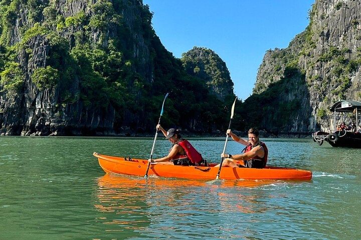 Summer Season (April 1 - October 31): The cruise anchors at the Cong Do area - an ideal spot for kayaking through untouched nature and swimming in the crystal-clear waters.
