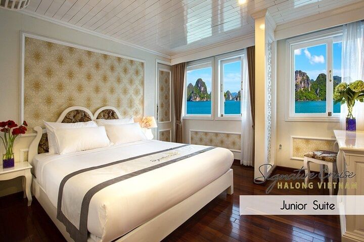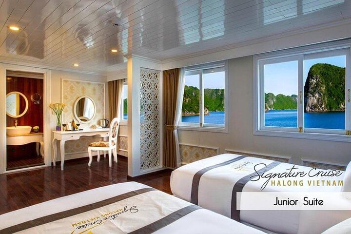 Signature Cruise is proud to offer a luxurious getaway amidst the breathtaking natural scenery of Bai Tu Long Bay- a tranquil and pristine gem of the Gulf of Tonkin. Aboard our elegant 5-star cruise, this 2-day-1-night journey is the perfect combination of discovery, relaxation, and cultural immersion.