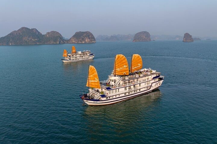 Day 2: Start the morning with a Tai Chi session on the sundeck as the sun rises. The cruise then heads to Thien Canh Son Cave, a hidden gem known for its fascinating limestone stalactites and soft white sand beach. After the excursion, a light breakfast will be served before guests return to the port, marking the end of an inspiring journey.
