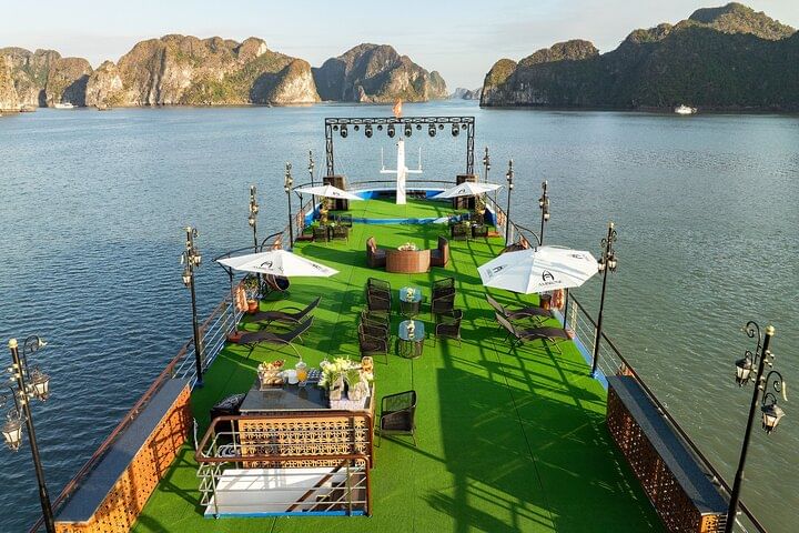 Leave behind the bustle of Hanoi and journey into the natural splendor of Ha Long Bay. Board your cruise at Ha Long Wharf and step into the awe-inspiring Sung Sot Cave, where dazzling stalactites and dramatic rock formations create a fairytale setting. Continue to the peaceful Ti Top Island, with options to kayak through the enchanting Luon Cave, swim in the turquoise waters of Titov Beach, or hike to its summit for sweeping bay views. As your boat drifts past limestone cliffs, soak up the sunshine and refreshing sea breeze. End the adventure with a lively sunset party on deck, complete with red wine, fresh fruit, cake, and more. Whether paddling through hidden lagoons or gazing at the panoramic scenery, every moment is designed to be unforgettable.
