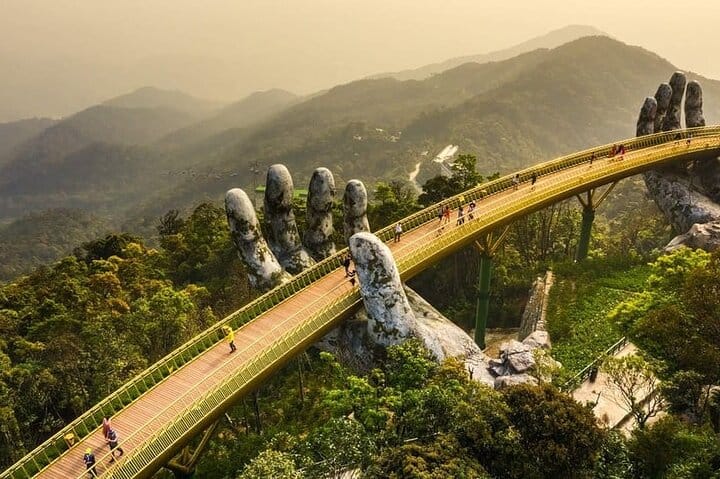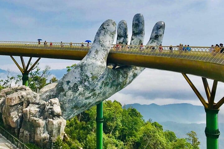 Experience the breathtaking beauty of Da Nang with the Ba Na Hills - Golden Bridge Deluxe Small Group Tour, featuring a scenic cable car ride, a visit to the iconic Golden Bridge held by giant stone hands, and a delightful buffet lunch at one of the mountain’s top restaurants. This well-curated small group tour offers personalized service, skip-the-line access, and stunning views of lush mountains and French-inspired architecture. Perfect for travelers seeking comfort, style, and unforgettable photo opportunities, this Ba Na Hills tour ensures a hassle-free and memorable adventure in central Vietnam. Book now for a premium experience with expert guides and seamless transportation.