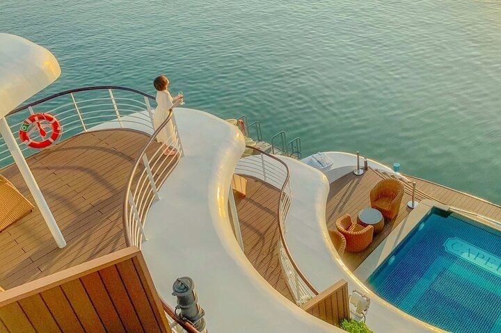 The charm of Cruise, which will be officially inaugurated in August 2020, has infused new life into the bay. It was named after the brightest star in the constellation of Auriga, and it carries the same spirit and goal to become the most spectacular cruise in the Gulf of Tonkin, pioneering avant-garde amenities and attentive services never before seen in Halong and Lan Ha Bay.