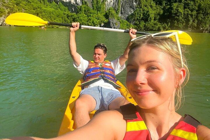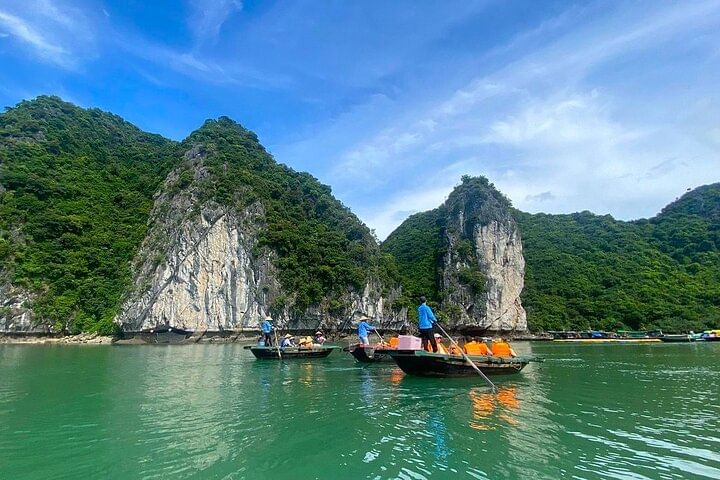 You will see Halong Bay and take part in a number of activities on this two-day group tour that leaves from Hanoi. Without having to worry about food, hotel, transportation, or other issues, you may explore the bay. Try kayaking, a bamboo boat tour, a cooking class, or any other activity your guide and crew provide. Famous for its stunning limestone karsts that abruptly erupt from the green seas, Halong Bay is a UNESCO World Heritage Site. As you ride over this natural treasure, the utter majesty of the countryside will overwhelm your senses. You will unwind with the boat's gentle sway and the sea breeze blowing through your hair.