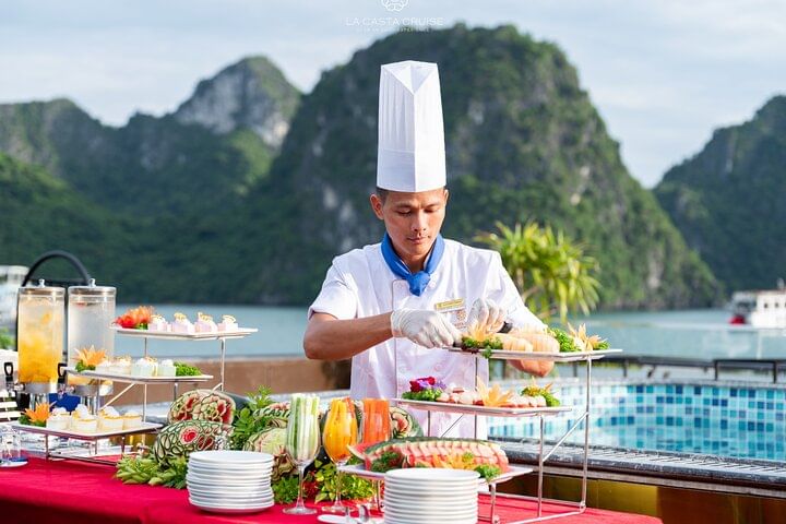 Experience the ultimate luxury escape with this 2-day, 1-night 5-star cruise through the breathtaking landscapes of Halong Bay and Lan Ha Bay. Departing from Hanoi, enjoy hassle-free round-trip transfers, elegant onboard accommodations, and all-inclusive meals. Explore hidden lagoons, limestone caves, and pristine islets by kayak or bamboo boat. Join cooking classes, Tai Chi sessions, and sunset parties for a perfect blend of relaxation and cultural discovery. Ideal for couples, families, or travelers seeking a premium Vietnam cruise experience.