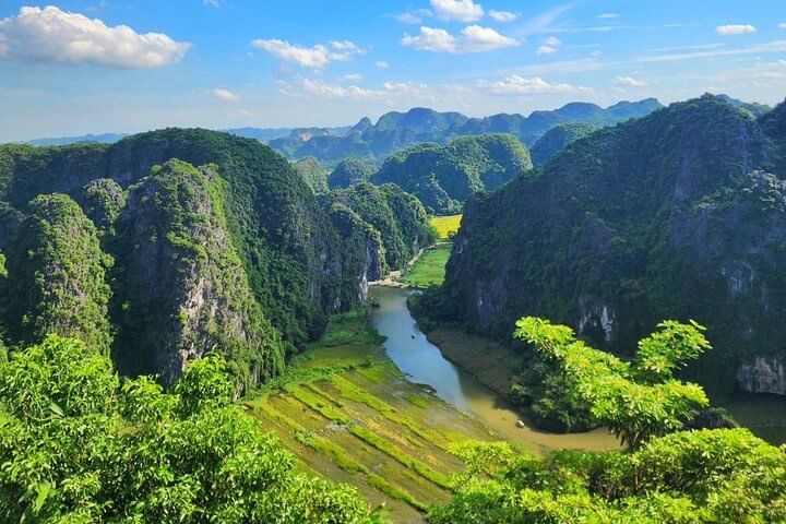 Visit the magnificent Bai Dinh Pagoda, enjoy a serene cruise through the stunning Trang An landscape, and hike up to the breathtaking Mua Cave for panoramic views. Get around the sprawling Bai Dinh complex in a convenient electric car. Boat trip to visit Trang An to see the amazing beauty of this landscape. Savor a Vietnamese buffet lunch with vegetarian options at a local restaurant. Observe fields and majestic mountain scenery from the Mua Cave viewpoint.Pick up and drop off at your hotel within Hanoi Old Quarter