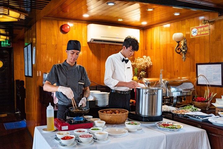 Embark on an unforgettable journey with the 4-star Hera Classic Boutique Cruise – 3 days 2 nights exploring Ha Long Bay from Hanoi, where luxury meets heritage in one of the world's most breathtaking natural wonders. Departing from Hanoi, this well-crafted itinerary takes you through the emerald waters of Ha Long Bay, offering stunning limestone karsts, hidden caves, and pristine beaches. Enjoy elegant onboard facilities, authentic Vietnamese cuisine, and a range of exciting activities such as kayaking, cave exploring, cooking classes, squid fishing, and sunset parties. With personalized service and a boutique-style atmosphere, the Hera Classic Boutique Cruise promises an intimate, relaxing, and memorable escape, perfect for couples, families, or anyone seeking a luxury Ha Long Bay cruise experience.