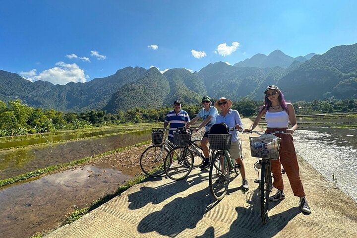 The one-day Mai Chau excursion transports guests through picturesque scenery to the serene countryside of northern Vietnam, providing a welcome diversion from Hanoi. After arriving, visitors are shown around a traditional stilt house, get to know the friendly locals, and take a leisurely bike ride through charming towns and rice farms. The tour includes a wonderful regional lunch, a short hike to see more of the stunning surroundings, and a visit to a local market for handcrafted goods. A leisurely journey back to Hanoi rounds out the day, making it the ideal quick but insightful cultural experience.